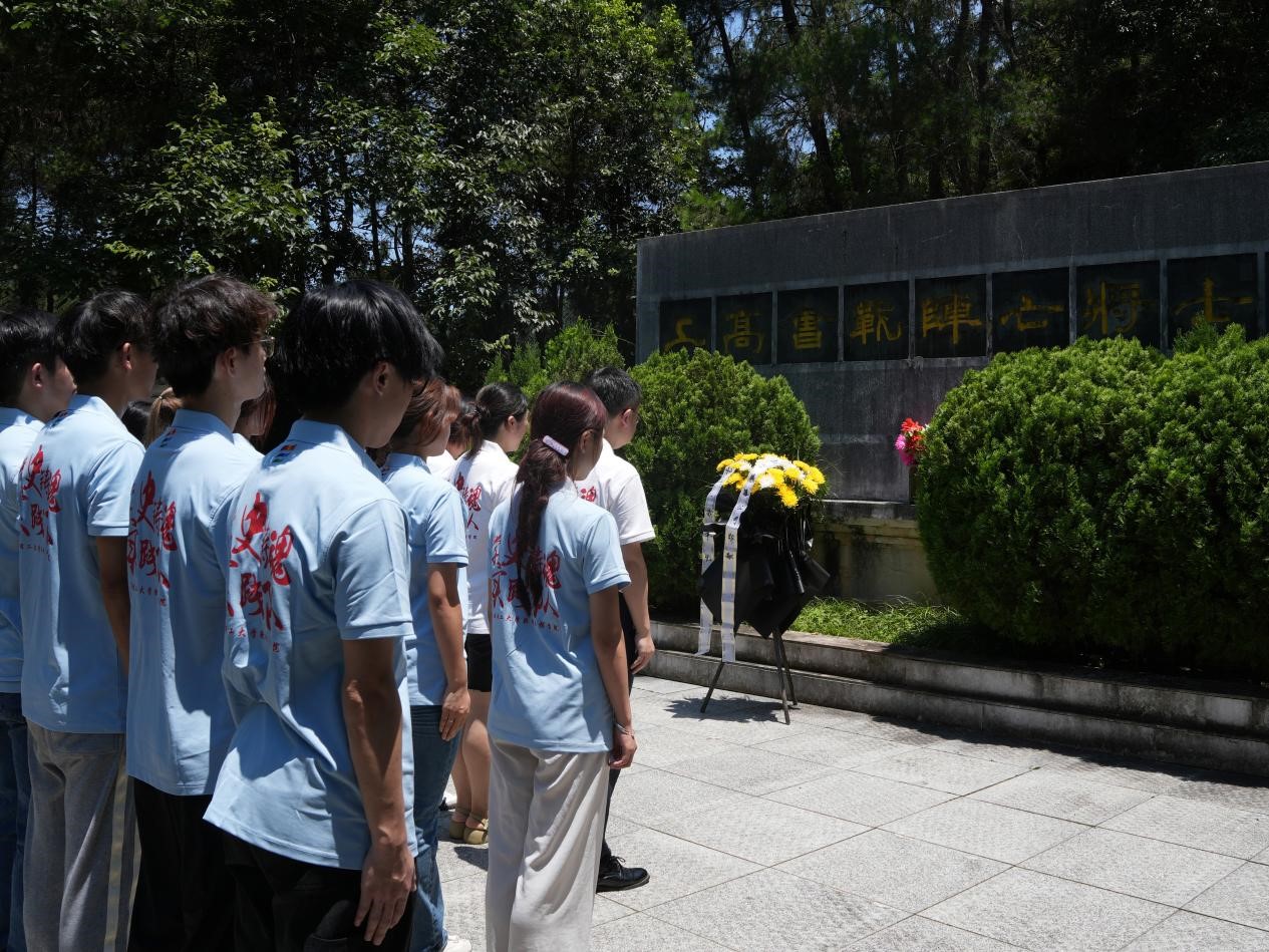 活动在庄严肃穆的抗日阵亡将士陵园前拉开帷幕。实践队员在此拜谒了上高会战阵亡将士陵园,重温了上高会战重要史实,瞻仰了上高会战阵亡将士名录,对上高会战期间牺牲的先辈英雄深切缅怀。英雄战死山河国,浩气长存满乾坤。全体人员在上高会战阵亡将士墓前肃立默哀并开展爱国主义教育专题“微团课”,向革命先烈致以崇高敬意,实践队员深刻感悟到了抗日将士们以天下兴亡、匹夫有责的爱国情怀,视死如归、宁死不屈的民族气节,不畏强暴、血战到底的英雄气概与百折不挠、坚忍不拔的必胜信念。