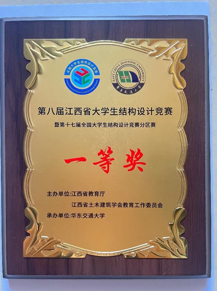 土木与测绘工程学院2022级土木工程专业本科生刘杰、赵宇飞、戴昌明组成的队伍,在吴建奇、王月梅、韩启浩等老师的指导下,荣获大赛一等奖,并将成为代表江西省参加第十七届全国大学生结构设计竞赛的三支队伍之一。