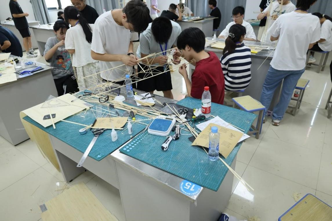 成绩始终位居全省前列。本次比赛得到了学院的高度重视和大力支持,土木力学系精心组织校内选拔,悉心开展集训。自赛题发布以来,从模型结构形式到结点细节处理,都经过无数次反复尝试、改进创新,最终参赛队员凭借巧妙的模型设计、精湛的制作工艺、突出的结构性能、稳定的现场发挥取得了优异成绩。