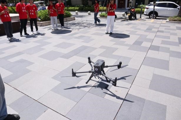 随后,在工作人员的带领下,同学们参观了公司的仪器设备库。“公司积极响应国家号召,引入了经纬300RTK无人机、无人测绘船、全站仪等高精尖仪器设备,让数据采集、处理和分析变得更加智能化、高效化。”负责人一边介绍一边展示无人机的运行。
