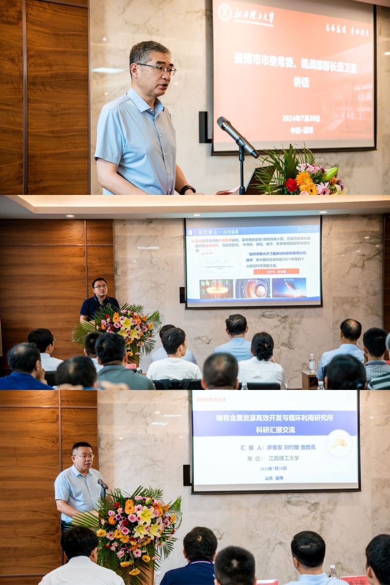 廖春发全面介绍了学校近年来科技发展取得成绩,重点介绍了稀土永磁磁浮轨道交通技术等典型科技成果,希望通过本次交流活动,进一步加强学校、淄博校友联谊会和淄博市以及淄博市稀土企业间的合作,助力淄博市稀土产业高质量发展。