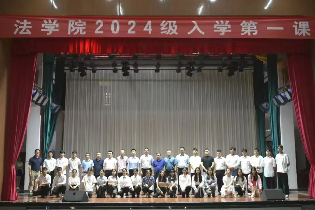 本网讯  9月8日,校党委常委、副校长黄志繁在红旗校区大礼堂为法学院2024级新生上入学第一课。法学院领导班子成员、部分教师及2024级全体新生聆听第一课,会议由法学院党委副书记欧阳鹏主持。