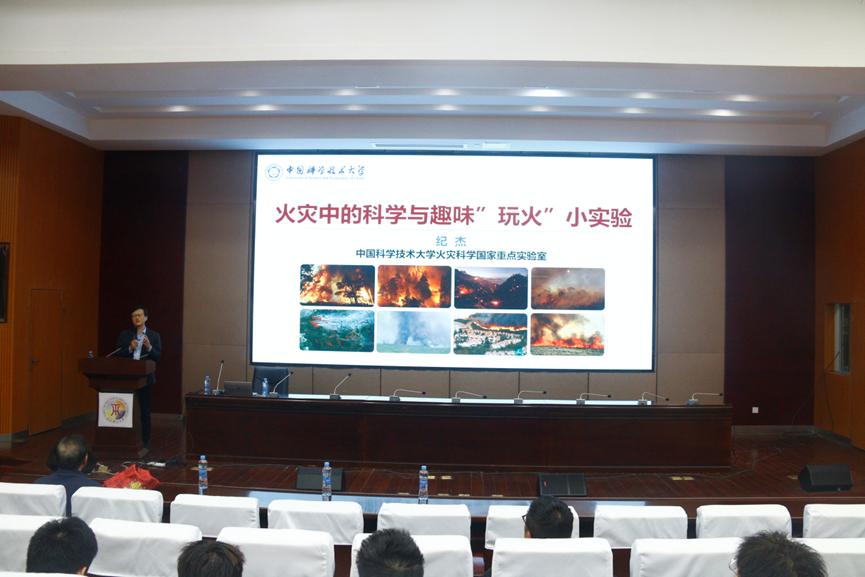 纪杰以《火灾中的科学与趣味‘玩火’》为题,从历史上一系列重大火灾案例出发,阐明了开展火灾研究的重要意义,结合流体力学、传热学、燃烧学等知识阐述了火灾科学的起源与发展,并介绍了建筑火灾、森林火灾、工业火灾等典型火灾的成因和发展过程,以及火灾科学研究的前沿与挑战。