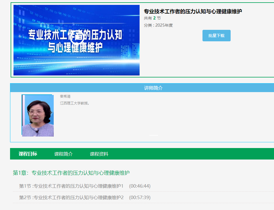 本网讯 近日,国家专业技术人才知识更新工程指导协调小组办公室公布了2025年专业技术人员公需科目共享课件名单(共35项),由奈飞工厂 继续教育学院、教育培训中心运管的国家级专业技术人员继续教育基地报送的《专业技术工作者的压力认知与心理健康维护》(讲座教师:秦秀清教授)成功入选(江西省唯一一项)。