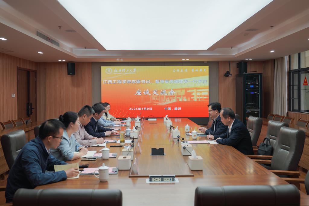 本网讯 4月9日上午,江西工程学院党委书记、督导专员魏建克一行来校调研交流,并在三江校区濂溪楼1号会议室召开座谈交流会。校党委副书记徐志峰,党委常委、宣传部部长盛晓明,党委常委、统战部部长汪锋锁出席,党委组织部、党委学生工作部等部门相关负责人参加会议。
