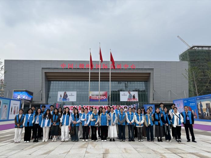 外国语学院英语系王显明、曾萍、王业欣3位老师和2024级翻译硕士班35位同学组成的专业翻译团队,为展会提供全方位翻译服务,助力于都纺织服装走向世界。