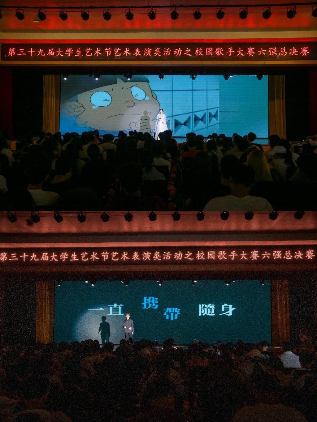 经过网络海选的层层选拔,共有六名选手脱颖而出,成功晋级决赛。他们慷慨献唱,逐梦巅峰。本次校园歌手大赛火热非凡,不仅现场观看的索票名额一经放出即被抢空,一票难求,线上直播也有四千余人共同观看,观众们情绪高昂,无一不为选手们的精彩表演欢呼。选手们信心满满,激情昂扬,为观众献上了一场视听盛宴。信息212班李恩昊的《Simon》,英语211班刘桓麟的《阿楚姑娘》,国贸231班陈奕彤的《听海》,法学24研李欢的《想你的夜》,材料235班王中越的《悟空》,法学226班何云娜的《星·Sailing》给线上线下的观众留下了深刻的印象,他们以空灵婉转或铿锵有力的声线,向全场观众展露大学生蓬勃跃动的青春风采,传递着青年一代对生活的赤诚热爱与对未来的炽热憧憬。聚光灯下的歌者们用旋律中的信念解码青春密码,以音符筑就的阶梯诠释着奋斗的青春最动人,立体呈现了理工科青年在时代征程中勇毅前行的精神风貌。