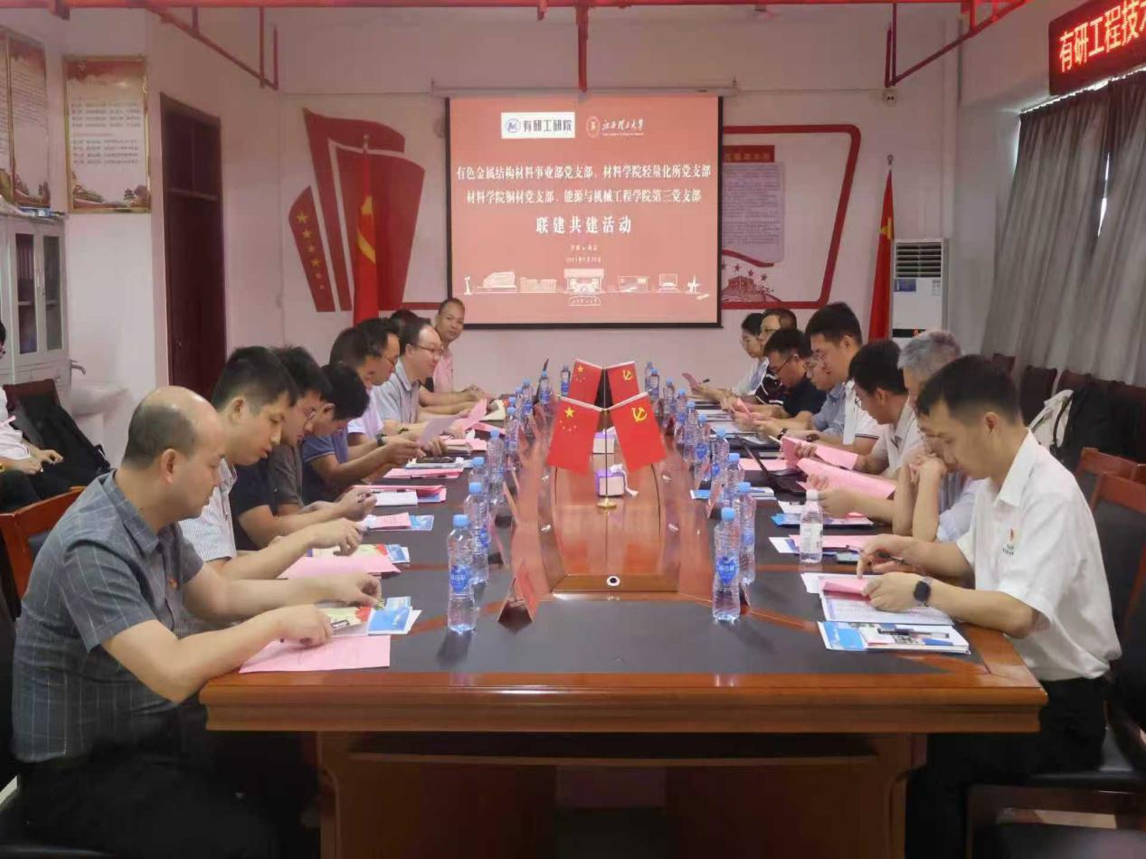 材料科学与工程学院轻量化所党支部及铜材党支部及能源与机械工程学院第三党支部在综合实验楼A1105会议室联合举办“铭记抗战精神 锤炼过硬作风 践行初心使命”党建共建活动。有研工研院有色金属结构材料事业部副总经理(主持工作)、支部书记解浩峰一行、事业部副总经理、支部委员闫宏伟、事业部先进铝合金研究所所长、支部委员李锡武等10名党员代表参会,奈飞工厂