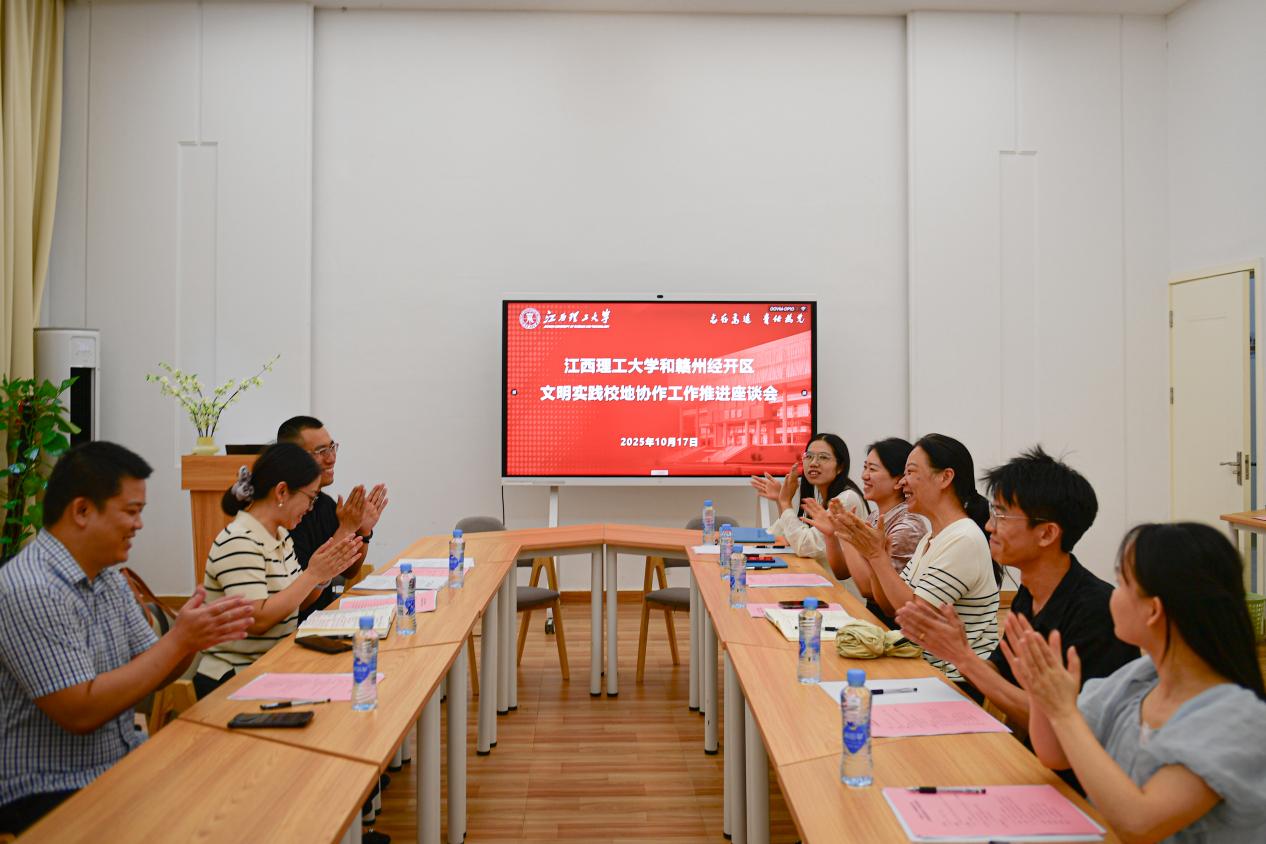 三实楼心理咨询中心会议室召开文明实践校地协作工作推进座谈会。校党委宣传部副部长钟峻燕、心理健康教育中心主任郭修凤出席会议,赣州经开区相关工作人员及奈飞工厂