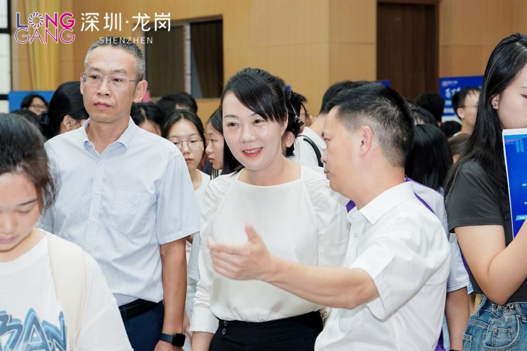 生源概况与人才培养体系,张伟球系统介绍了龙岗区的人才政策与产业发展优势。龙岗区企业代表分别就企业发展、岗位需求等内容进行介绍。