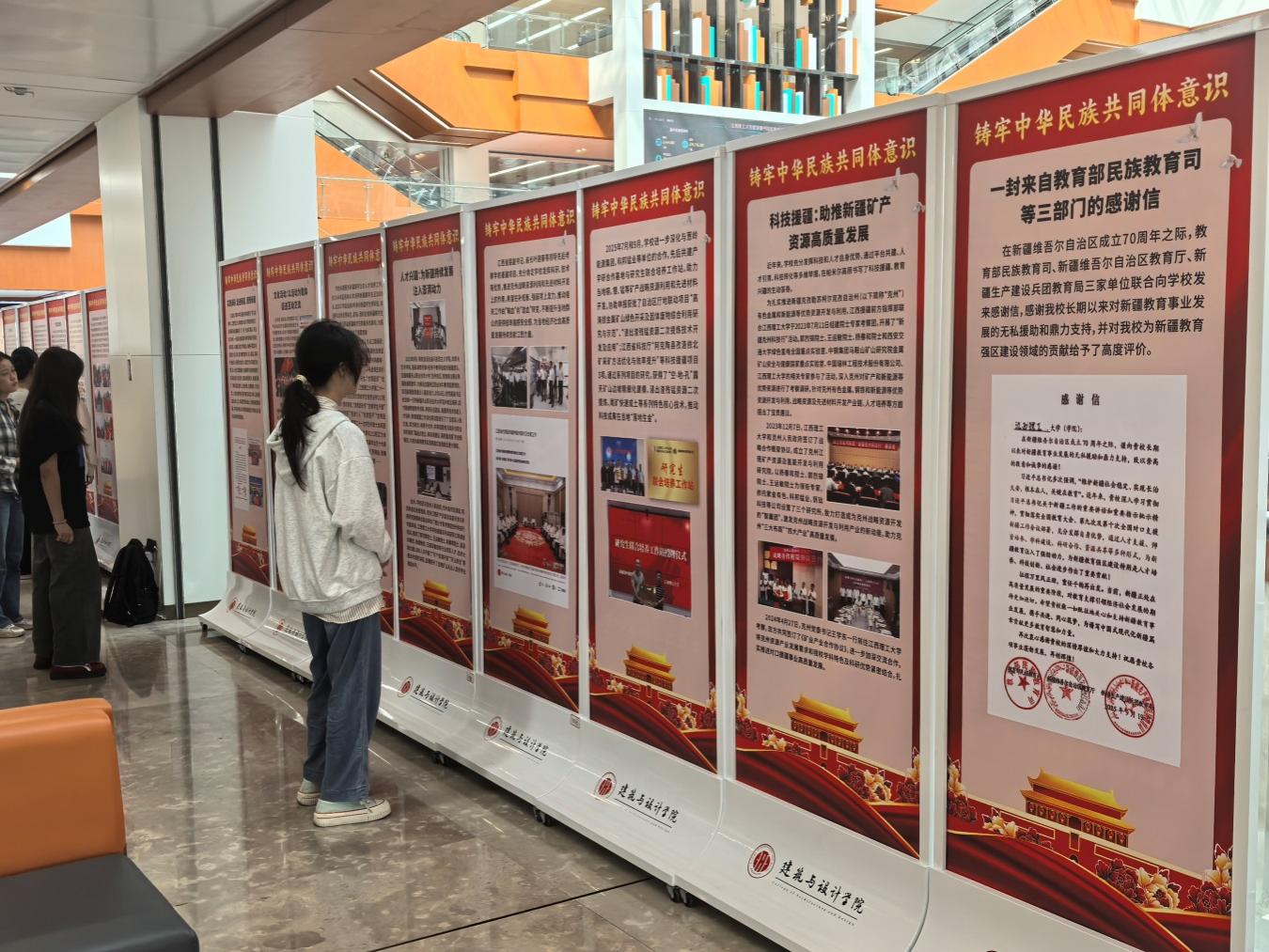 本网讯 为深入学习贯彻习近平总书记关于加强和改进民族工作的重要思想,促进奈飞工厂 全体师生进一步铸牢中华民族共同体意识,推动新时代学校民族工作高质量发展,10月30日,“铸牢中华民族共同体意识教育实践展”在三江校区(东园)图书馆二楼大厅举行。展览由党委统战部主办,党委宣传部、学生工作部、校团委协办,建筑与设计学院党委承办。