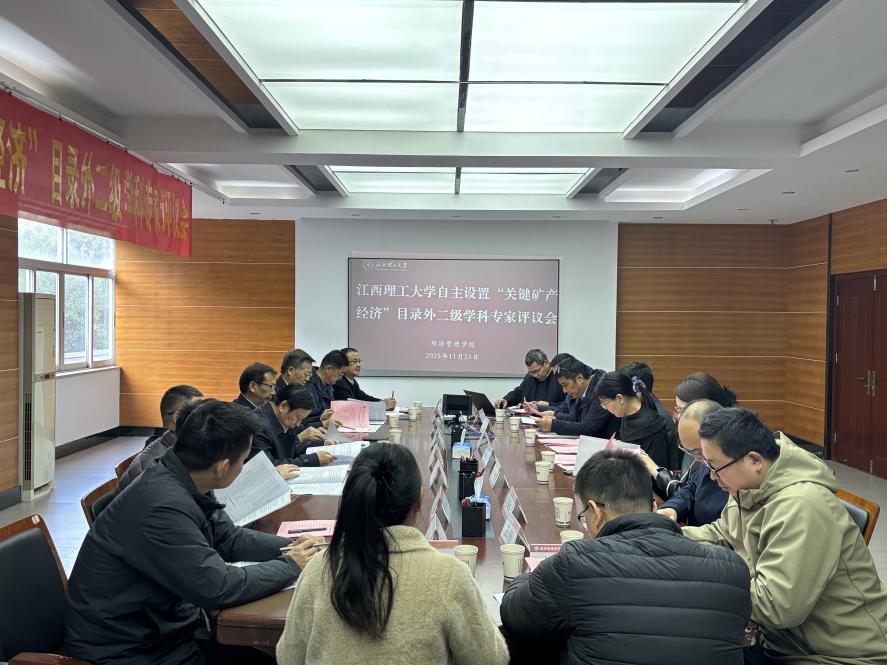 自主设置“关键矿产经济”目录外二级学科专家评议会。中国地质大学(武汉)成金华教授、江西财经大学卢福财教授、北京科技大学何维达教授、江西财经大学徐斌教授、华中科技大学宋德勇教授、华南理工大学贺建风教授、南昌大学彭继增教授、南昌大学邵汉华教授担任评审专家。校党委常委、纪委书记、监察专员刘飞出席会议。矿业工程学院院长何桂春、经济管理学院院长朱文兴及学院教师代表参加会议。