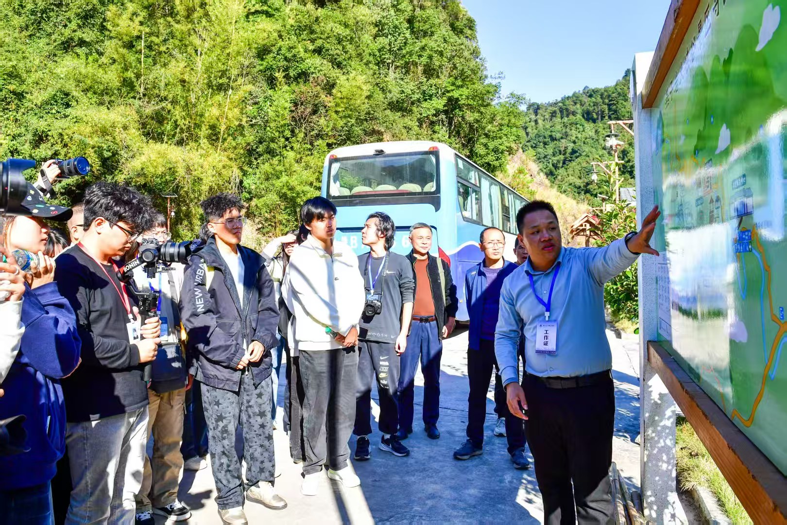 景区讲解员同步介绍着生态保护理念与文明旅游要求,让同学们在欣赏自然之美的同时,树立尊重自然、顺应自然、保护自然的可持续发展意识。途中,师生们在灵泽潭、同心桥等标志性景点开展了拍摄,聚焦瀑布水流、森林植被等细节,记录眼中的自然之美与心灵感悟,用相机定格住“红色文化+绿色生态”的交融瞬间,让革命精神与生态文明的理念同频共振。