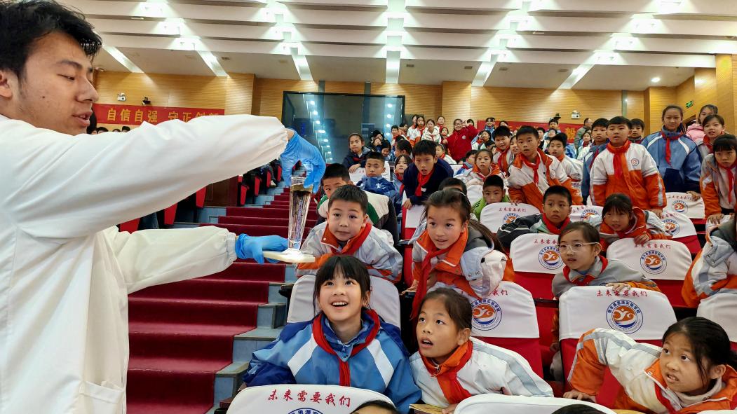 电子信息产业学院教工学生联合党支部,走进信丰县思源实验学校校园,为这里的孩子们带来一场别开生面的“化学魔法秀”。