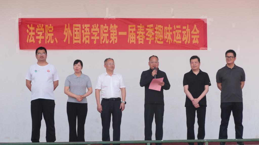 本网讯  为丰富校园体育文化生活,搭建跨院交流互动平台,培育青年学子团结协作精神,4月18日下午,外国语学院与法学院携手举办的首届春季趣味运动会院赛在红旗校区田径场启幕。社会科学学部办公室主任兼分管日常工作的副部长王小元,外国语学院和法学院领导班子成员及两院辅导员、班主任参加开幕式,全体本科生、研究生踊跃参赛,在欢声笑语中开启了一场活力满格的春日盛会。